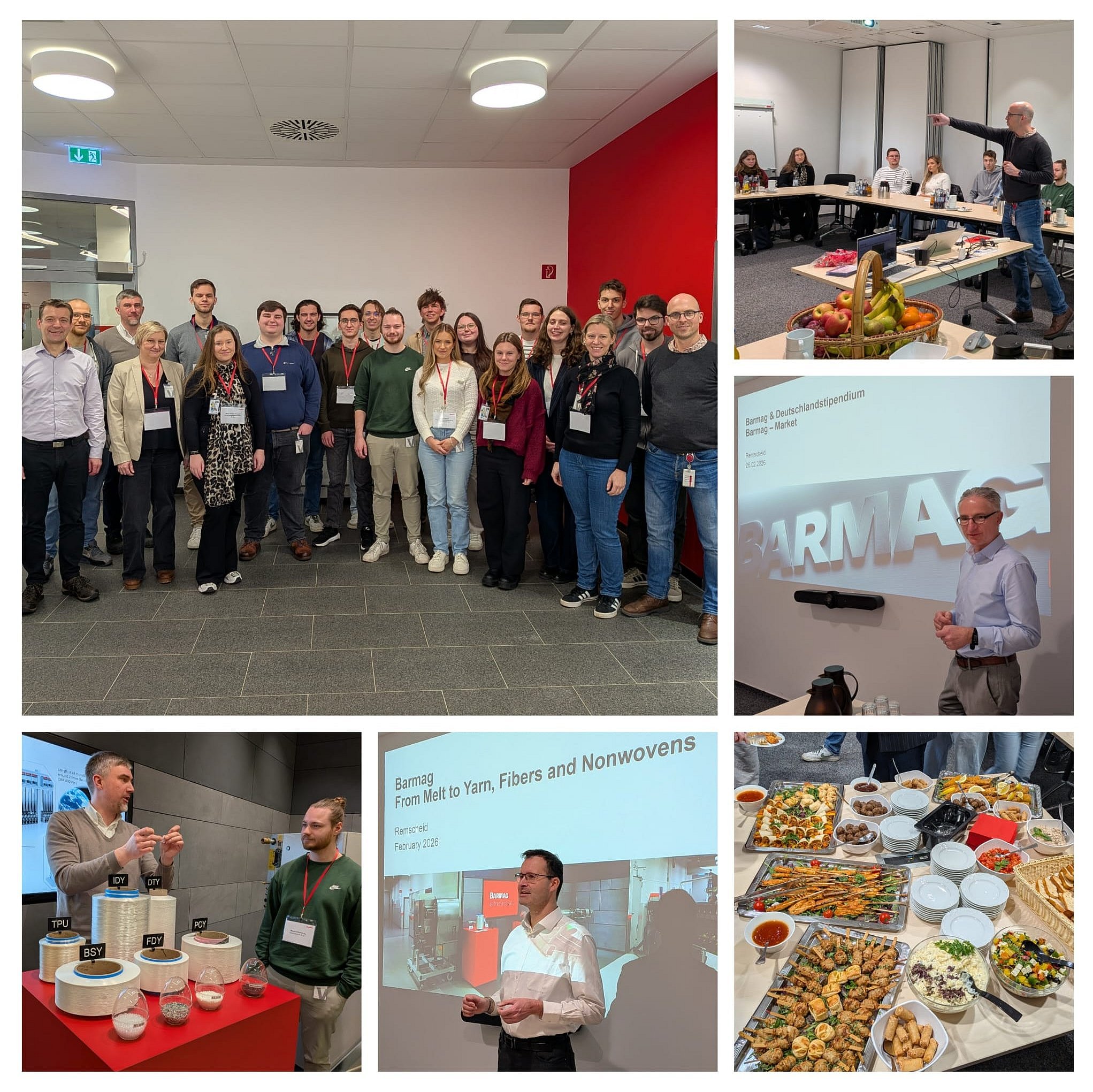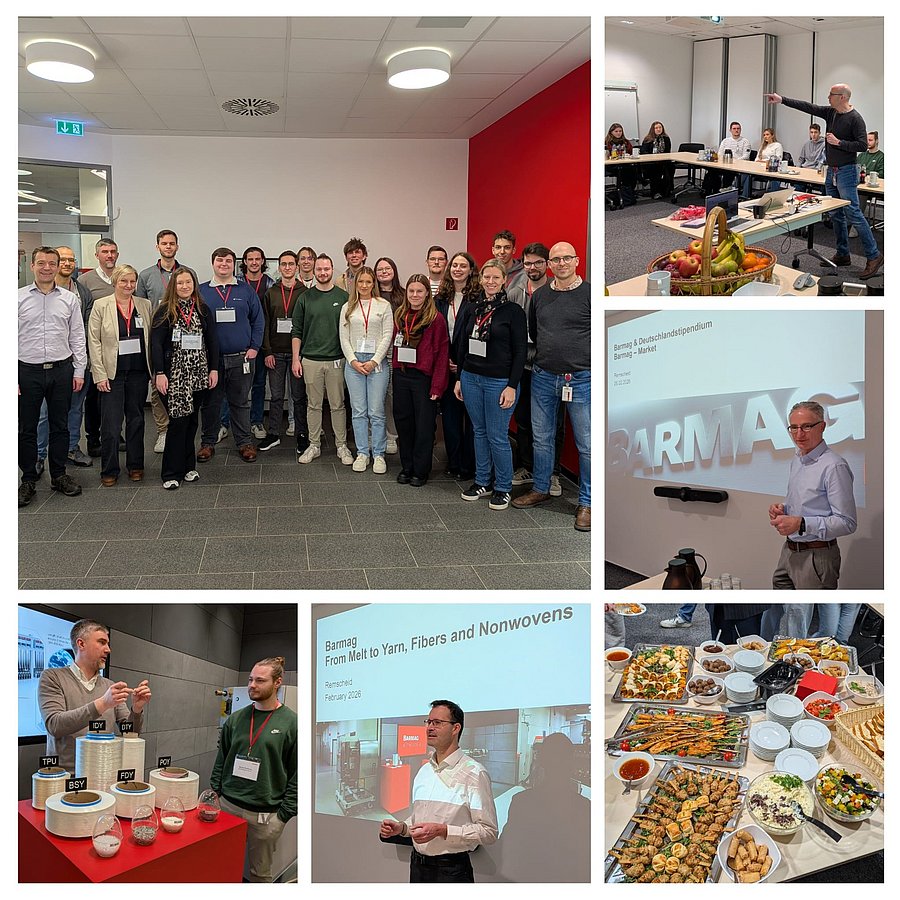 Die erste diesjährige Exkursion im Rahmen des Deutschlandstipendiums führte uns in der letzten Woche nach Remscheid zu unserem Förderer Barmag, der als einer der weltweit führenden Hersteller von Spinnanlagen und Texturiermaschinen für Chemiefasern gilt und mit innovativen Lösungen die gesamte Prozesskette der Filament- und Garnproduktion abdeckt. Der Firmenbesuch bot durch den Wechsel von Vorträgen und Rundgängen (durch Technikum und Montage) einen besonders tiefen und praxisnahen Einblick in Technologien, Märkte und Arbeitswelt des Unternehmens.